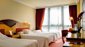 O Hotel combina a calidade dos materiais nobres, cunha decoración clásica en todas as estancias, a amplitude ea luz natural exterior son comúns nas 160 habitacións que dispón o hotel. O Hotel distribúese en 152 habitacións dobres, das cuáles 4 son adaptadas e 8 suites. Todas as habitacións están equipadas con baño independiente, minibar, teléfono, secador, amenidades, caixa de seguridade, televisión LED con canles internacionais e WIFI gratuíto.