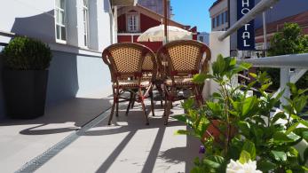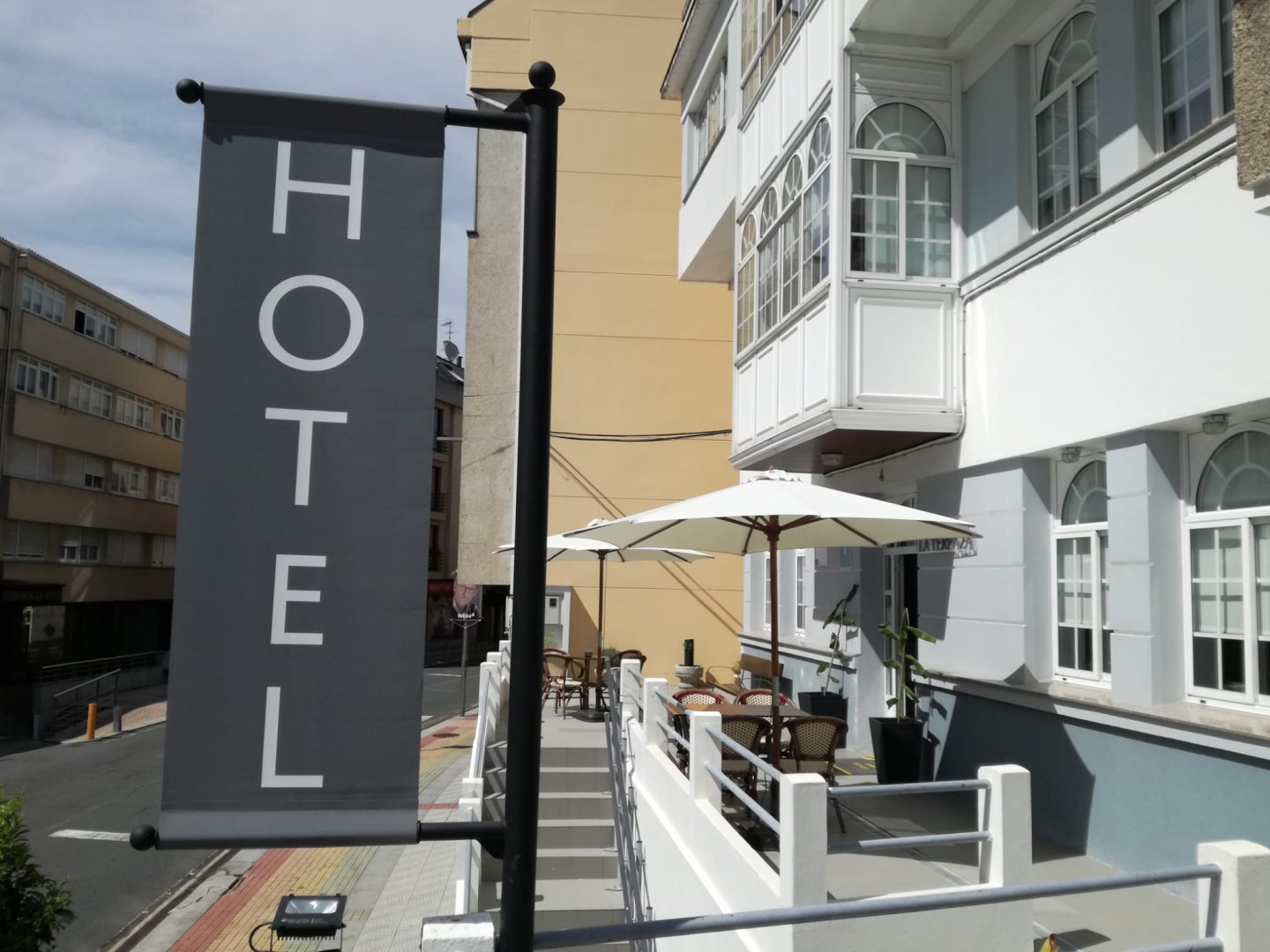Hotel A Terraza atópase no municipio costeiro de Miño (A Coruña) e ofrece o servizo de hospedaxe e almorzo. Situado no centro urbano da localidade e próximo a distintos bares e locais de comida, é un aloxamento ideal para gozar das tranquilas praias de area dourada de Miño, visitar as Rías Altas e coñecer as Fragas do Eume.